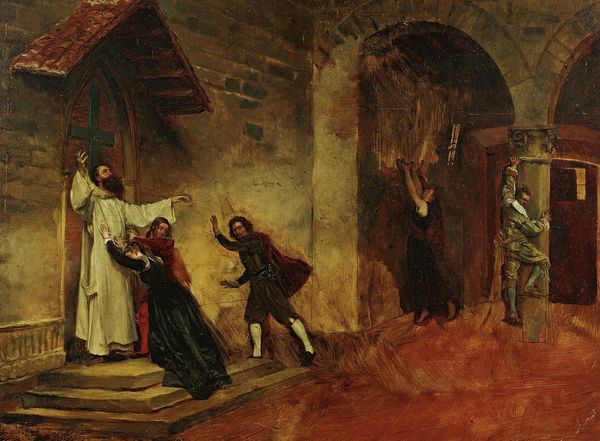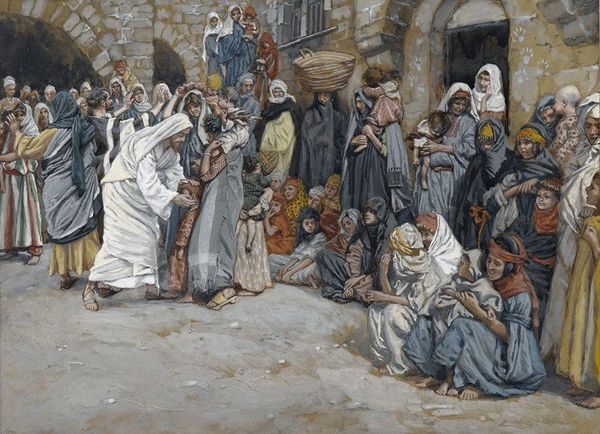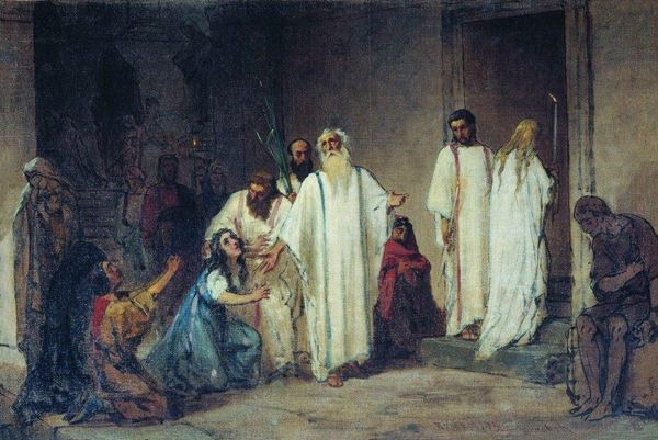 Vasily Polenov captures a moment of profound emotion in this painting. At its heart is a woman in dark robes, arms outstretched, a beacon of news amidst huddled figures draped in white veils—symbols of mourning and purity. This motif of raised arms echoes through ages. Think of ancient orants in catacombs, their gestures embodying supplication and divine connection. The gesture transcends cultures, resurfacing in classical depictions of ecstasy, or the Christian narrative of resurrection, each iteration imbued with the emotional weight of hope and despair. Consider how such expressions evolve. Initially a plea to the heavens, it transforms, through subconscious cultural memory, into a symbol of triumph. This painting is a powerful force engaging viewers on a deep, subconscious level; the composition conveys intense emotional states. These symbols—mourning veils, raised arms—demonstrate the non-linear, cyclical progression. They resurface, evolve, and take on new meanings in different historical contexts.