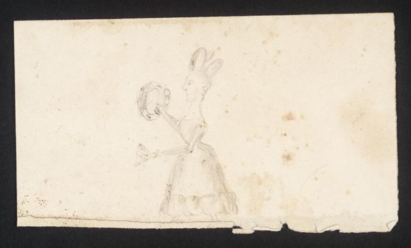 Editor: Here we have Susanna Duncombe's "A Lady and a Gentleman Dancing," held at the Tate. It’s quite small, and the figures are rendered with such quick, expressive lines. What does this image evoke for you? Curator: The sketch, with its seemingly effortless depiction of movement, speaks volumes about the social rituals of the time. How might this image have been perceived within the artistic circles and societal norms of 18th-century England? Editor: So, it's a reflection of societal norms? I hadn't considered that. Curator: Precisely. Dance was a carefully choreographed display of status and courtship, and Duncombe captures that performance. The very act of sketching such a scene—what does that say about her position and perspective? Editor: It makes me think about access and who got to participate in these rituals, both in life and in art. Curator: An excellent point. It is interesting to think about the role of women in the arts and the societal norms that affected their work. Editor: Yes, that changed how I view this piece. Thanks!