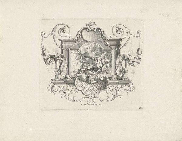 Bernard Picart created this vignette with etching in 1723. The image displays a burning lamp in a formal style. It is adorned with decorative elements such as a mascaron, garlands, and scrollwork. Picart was a French engraver who spent much of his later career in the Netherlands. He was a key figure in the dissemination of French artistic styles across Europe. The decorative style suggests the influence of the French court. Consider the formal gardens of Versailles and the decorative motifs within the palace itself. This aesthetic, promoted by the French monarchy, became the standard of taste for the rest of Europe. Engravings like this were often made for books or as models for other artists and artisans. They show us how artistic ideas circulated in the 18th century and how the values of the French court were spread throughout European culture. To understand this, we can look at period books and documents that discuss the arts, decorative styles and the system of patronage that spread the French aesthetic.
