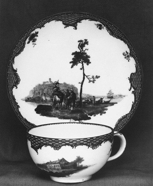 Editor: Here we have a porcelain cup and saucer from the Meissen Manufactory, dating from the late 18th century. The floral design feels very formal, almost rigid. What can you tell us about this piece? Curator: From a materialist perspective, it's crucial to recognize this isn't just decoration. Porcelain production in 18th century Europe represented significant technological and economic power. Meissen porcelain was particularly prized and carefully guarded. Editor: How so? Curator: The techniques were so valuable they were practically state secrets. Consider the labor invested in the extraction of kaolin clay, the refining processes, the skilled artisans painstakingly painting these details, and then the intense heat of the kiln… All point to a highly organized system of production. The consumption of this cup becomes linked to privilege. What might this object represent for a typical worker during that era? Editor: Probably something unattainable. A symbol of a completely different life. Did the workers who created this even have access to similar goods? Curator: Highly unlikely. This is where we see the sharp divisions of labor and the skewed distribution of wealth inherent in the decorative arts of the period. The cup, seemingly innocent, becomes an artifact loaded with social meaning. Its existence depends on a vast network of labor, extraction, and consumption. Editor: So, viewing this cup through a materialist lens, we're really examining the whole system of production and consumption of the late 1700s. Thank you for pointing that out! Curator: Precisely! Considering material culture challenges us to confront those hidden power dynamics shaping society, through an object that may seem simple.