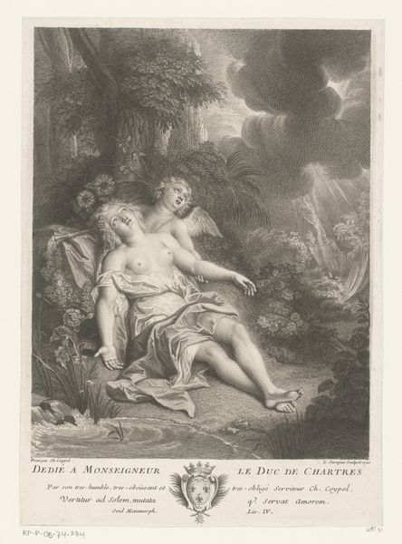 Mlle Contad’s “Venus og Amor” is an intriguing example of 18th-century printmaking, a medium then at the intersection of fine art and commercial reproduction. The artwork is an etching, a printmaking process relying on the corrosive properties of acid to create an image on a metal plate. The artist would have painstakingly coated a copper plate with a waxy, acid-resistant substance, then scratched an image into the wax, exposing the metal beneath. The plate was then immersed in acid, which bit into the exposed lines. The resulting grooves hold ink, which is then transferred to paper under high pressure. This process allowed for the relatively efficient creation of multiple images, serving a growing market for visual culture. The fine, delicate lines and tonal variations, so carefully rendered here, speak to the engraver’s skill. The print becomes a commodity, circulating images of beauty and classical themes for a wider audience. Recognizing the labor, skill, and context of production enriches our understanding and challenges the traditional art historical hierarchy.
