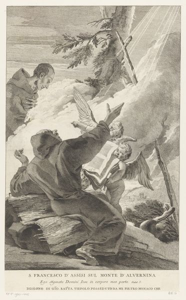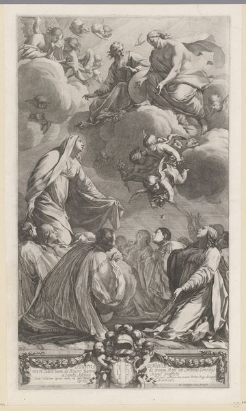 "Maagd verschijnt aan de H. Antonius," or "The Virgin Appears to St. Anthony," was created by Michel Lasne, circa 1647. Lasne made this engraving during the Counter-Reformation. The piece depicts St. Anthony, a symbol of devotion, being visited by the Virgin Mary and baby Jesus, who emerge from the heavens surrounded by cherubic angels. Light radiates from the divine figures, illuminating the saint below. The details of the engraving, from St. Anthony's ragged clothes to the rosary beads beside him, suggest the performative nature of piety. During this time, the Catholic Church sought to reaffirm its spiritual authority. Art was often used to inspire religious fervor and awe. "Maagd verschijnt aan de H. Antonius" encapsulates both the personal quest for faith and the communal experience of religious ecstasy, highlighting the era's complex negotiation between individual spirituality and institutional power.
