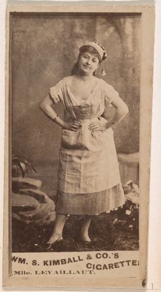 This photograph of Mlle. Verdier is part of the "Actresses" series, printed by Wm. S. Kimball & Co. and included in cigarette packs. These cards were immensely popular in the late 19th century, reflecting a growing fascination with celebrity culture and mass media. Consider the context: the rise of commercial photography alongside the burgeoning tobacco industry. Actresses, like Verdier, became commodities, their images circulated and consumed as collectible objects. How did this affect their agency and autonomy? How does the male gaze shape the representation of women in these images? The card is a reminder of the complex interplay between entertainment, commerce, and gender in shaping cultural values. It prompts us to consider the representation of women in media, and the cultural dynamics of the time. It invites us to reflect on the power of images to both reflect and construct societal norms.