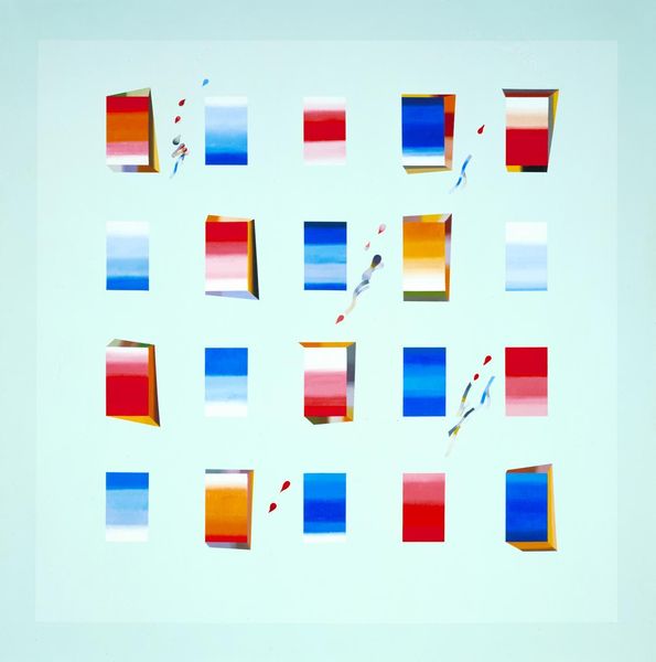 Curator: What leaps out to me is this kind of playful austerity; so clean, so graphic. It feels incredibly iconic, instantly recognizable, but I can’t quite place it. Editor: This is Robert Indiana’s "Four Panel Love," printed in 1972. And I see what you mean about playful austerity. This print really epitomizes pop art's visual language, doesn’t it? Especially as it leverages that industrial feel through typography and sharp lines, really giving you those immediate vibes. Curator: Yeah, there's definitely something both comforting and kind of detached about that. It's love presented almost like… well, like signage. Did Indiana ever talk about that disconnect, that commercialization of emotion? Editor: Well, what's intriguing is how Indiana positions himself within a much broader lineage. This piece arrives on the heels of movements examining semiotics and structuralism where the very notion of signs were being unpacked. What can we *really* mean when we deploy "love"? Further, we need to think about how deeply identity is embroiled within what LOVE represents. What happens when certain groups are disenfranchised from this cultural message, for instance? What is unsaid, but still implied? Curator: Hmm. So, is Indiana challenging or complicit in diluting feeling, by mass-producing the feeling? It's like he's turning something deeply human into this… thing. That diagonal "O," though! Did you know he initially envisioned it upright? Editor: It really destabilizes the otherwise rigid geometry, right? Perhaps, there’s a sense of whimsy despite that underlying corporate feel? Regardless, I wonder how it spoke to viewers at the time. Now the symbolism around this is so prevalent. Has its effect waned? Curator: That's an interesting question. It's definitely woven into the cultural fabric at this point, but perhaps recognizing it is only half the story. It forces us to interrogate the context around love itself. We really do love differently from even 50 years ago! Editor: True, a contemporary understanding forces us to question if, perhaps, love, itself is an artifice? I think that is precisely the conversation that Indiana seeks to explore. What do you make of that for the viewers here today? Curator: Ultimately, viewing is about seeing! Now that we have started asking, they will see something totally different in this deceptively simple form, or set of forms. And hopefully, that will provoke some deeper reflection, too.