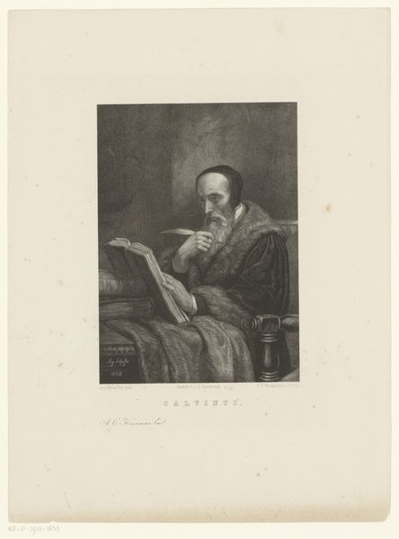 Curator: This is an engraving titled "De heilige Johannes van het Kruis," or "Saint John of the Cross" produced sometime between 1712 and 1786 by Giovanni Marco Pitteri. What’s your immediate take? Editor: Eerily contemplative. The skull he’s clutching really pulls you in, doesn't it? It is kind of subdued given the typical baroque flair, though. Almost feels more... tender. Curator: That skull, as a 'memento mori', is a pretty potent symbol, hinting at mortality and spiritual reflection. But beyond just death, skulls represent the ephemeral nature of existence and the understanding that worldly possessions hold no value in the afterlife. Its symbolic potency is kind of eternal, isn’t it? Editor: Eternal, yes, and maybe even more poignant during the Baroque period. I mean, this era relished ornate drama but was equally obsessed with human transience, leading to a stark visual dialogue. Do you think his gaze averted reinforces this contemplation or softens the image a bit? Curator: Both, perhaps! I see it as directing the viewer inward. John isn't preaching; he's meditating, inviting us into his spiritual sphere, reflecting the intimate encounter with one's own mortality, which can be deeply affecting. It adds this beautiful, melancholy humility. Editor: It is curious to see a print deployed here though – and not an oil on canvas. How does the black and white media change the symbol from its potential gaudiness? It does seem appropriate here. Curator: Precisely! As an engraving it's more widely accessible, allowing this meditation on life and death to enter everyday spaces rather than being confined to churches or noble collections. Making spiritual contemplation accessible, now that's baroque generosity in its own way. Editor: Absolutely. Looking at it again, this print almost feels like a gentle nudge to reassess life, wrapped in a shroud of beautifully somber aesthetics. I walked in thinking death, and now I think a lot more about life! Curator: A potent reminder, spun from ink, contemplation, and the dance between the temporal and eternal. Quite haunting and poignant.