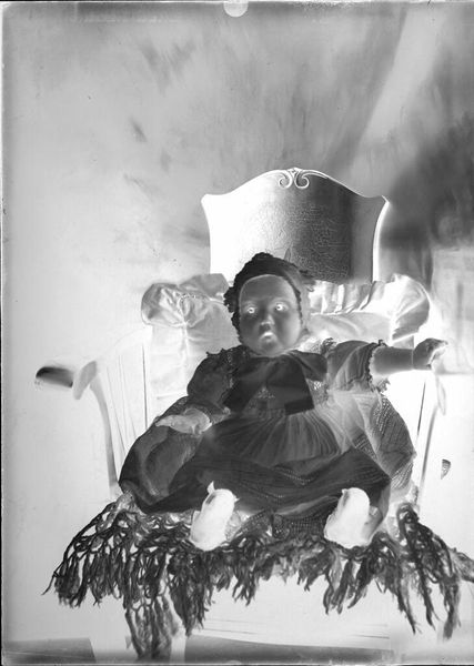 Curator: This intriguing, small photograph, around 4 x 5 inches, is titled "Untitled (man in chef hat holding platters of bread)," by Jack Gould. It's held in the Harvard Art Museums. Editor: Mmm, bread! Even inverted, I can almost smell it. There’s a haunting generosity in his pose. Like he's offering comfort in monochrome. Curator: Indeed. We must consider how the means of photographic reproduction, the film, the darkroom processes, shape our consumption and understanding of the culinary arts. Editor: Photography, like baking, transforms raw materials. It captures a fleeting moment, just like a perfectly risen dough, doesn't it? Both require patience and a touch of magic. Curator: Precisely. The artist’s labor, along with that of the baker, is rendered visible through this photographic object. Editor: I find myself wondering about the stories behind those treats. Were they made with love, or just a daily grind? It’s strangely poignant for such a simple image. Curator: It gives us much to chew on, doesn’t it? Editor: It certainly does!