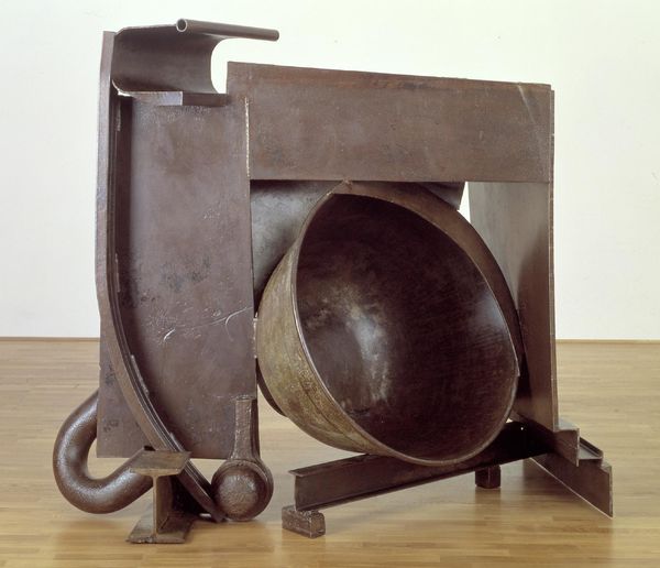 Editor: This is Richard Deacon's *This, That And The Other*. I'm really drawn to the industrial feel of the materials, like repurposed conveyor belts. What do you see in this piece? Curator: I see an embrace of the everyday, of labor and materiality. It challenges the traditional hierarchy separating "high art" from functional objects. How does Deacon transform these industrial materials through process? Editor: He bends and shapes them, almost defying their original purpose. It makes you think about where these materials come from and their previous lives. Curator: Precisely! The work becomes a commentary on consumption and the life cycle of materials within our industrial society. What have you learned? Editor: The focus on materials really changes how I see sculpture.