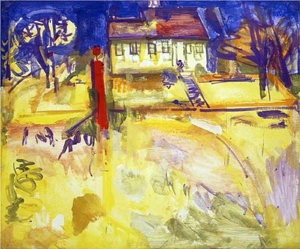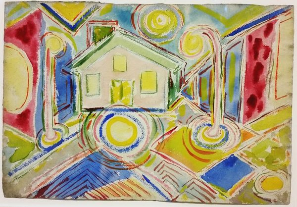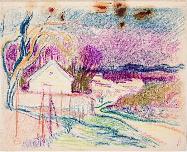 Here is the audio guide script about Czóbel Béla Szentendrei Udvar. Bela Czobel rendered this pastel drawing of a Szentendre courtyard, using strokes of green, yellow, pink and brown. The composition is organized around a cluster of trees that frame a building. The pastel medium allows for a textured surface where individual marks remain visible. The strokes build up layers of colour that define the forms and create a sense of depth, yet the loose handling of the pastels flattens the space. We see a play between representation and abstraction. Czobel engages with the Fauvist use of colour to evoke emotions. The drawing destabilizes traditional perspective, suggesting a world seen not through a rational, fixed gaze but through a more fluid, subjective lens. Note how the artist's signature in the lower right corner is integrated with the design. It’s as if the signature itself is another element in the composition. This work challenges conventional ways of seeing.