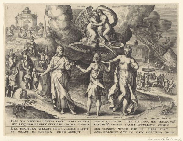 Conrad Meyer etched this image of the Triumph of Death, a grim dance of mortality, sometime in the 17th century. Here, Death isn't a skeleton but a winged, almost human figure, holding an hourglass, a symbol of fleeting time, while a scythe rests on its shoulder. This recalls ancient portrayals of Chronos, the personification of time, often depicted with similar attributes. Death's triumph is underscored by the memento mori—the skulls—stacked high in a classical archway. The hourglass reminds us of the vanitas tradition in painting, with earthly achievements rendered as temporary objects. Consider the persistence of these symbols: the hourglass appears in countless depictions of saints, allegories, and moralizing scenes. It evolves, yet retains its core meaning. Just as the serpent in the Garden of Eden represents temptation across cultures, so too does the hourglass speak to our collective anxiety about the ephemeral nature of existence. The image invites us to confront our own mortality.