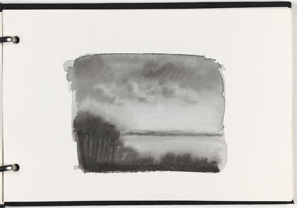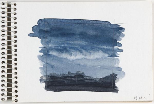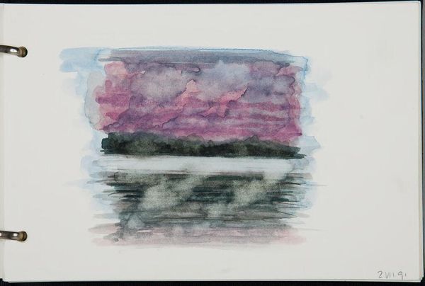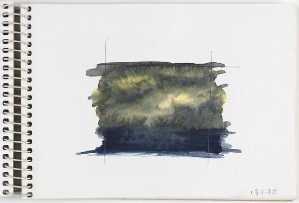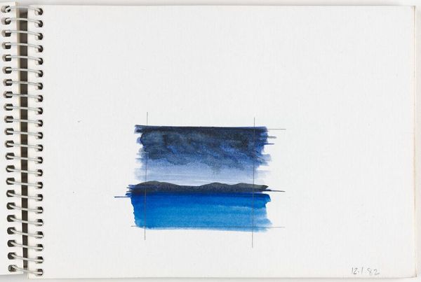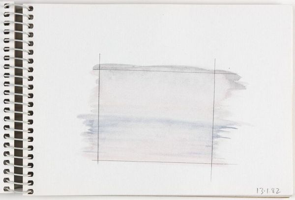 Curator: This delicate watercolor by Elena Prentice, simply titled "Landscape," offers a subtle study in light and form, dating perhaps to January 15th, 1982, based on the handwritten notation. Editor: My first impression is one of immense tranquility. It feels like gazing out at a still, endless sea under a pale sky. Curator: The visible grid lines suggest an interest in the structure and process of image making. Prentice seems focused on the materiality of the paint itself and its application on paper. Editor: Yes, the liminal space feels symbolic, that hazy horizon between the known and the unknown. It evokes a sense of contemplation and the ephemeral nature of perception. Curator: I find myself drawn to the raw quality of the sketchbook page, the imperfect edges of the watercolor washes. Editor: Ultimately, this small artwork invites us to ponder the vastness and mystery inherent in seemingly simple scenes.