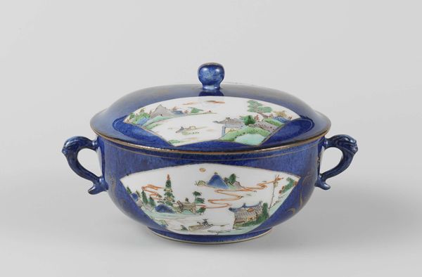 Editor: Here we have a porcelain tea service for two, or "tête-à-tête," crafted around 1782-1784 by Loosdrecht. I’m really struck by the delicate pastoral scenes painted on it; they seem so idyllic. How do you interpret this work within its historical context? Curator: It's tempting to see the work as merely decorative, but situating it within its socio-political landscape unveils deeper layers. How do we reconcile the dainty elegance with the harsh realities of 18th-century class structures and colonialism that made such finery possible? Consider the labour and exploitation involved in acquiring the raw materials for porcelain, and the consumption patterns of the wealthy elite. Editor: That's a powerful point; the surface beauty obscures a more complex reality. I hadn't considered the connection to colonial exploitation so directly. So, would you say appreciating this piece requires a critical examination of its origins and the social inequalities of the time? Curator: Absolutely. Think about whose stories are centered versus marginalized within these idealized pastoral scenes. Who is pouring and who is being served? These aren't neutral images. Examining the service through a lens of class, gender, and power dynamics helps reveal hidden narratives. Where are the laborers and colonized people in this seemingly pleasant scene? Editor: It definitely complicates my initial perception. Now I see a tension between the intended elegance and the socio-economic backdrop. So, the act of even consuming tea from this service is…political? Curator: Precisely! Understanding that relationship between aesthetics and politics, surface and submerged, is vital. Can you think of other examples? Editor: This has opened my eyes to a whole new way of engaging with art. I realize that simply appreciating its aesthetic beauty isn’t enough; we need to interrogate its context and underlying power dynamics. Curator: Exactly! And questioning whose stories get told is where true understanding begins.