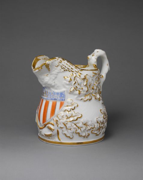 This pitcher, made by Charles Cartlidge and Company, presents us with a fascinating interplay of symbols from its time. Notice the shield emblazoned with stripes. This motif isn't merely decorative. The shield, a universal symbol of defense and national pride, here evokes a powerful sense of identity. We see echoes of classical Roman shields, emblems of civic virtue and military might, adapted and reborn in the American context. The wheat motif, also rendered on the pitcher, is associated with cycles of growth and renewal. Its roots go back to ancient harvest festivals and the veneration of agricultural deities. Consider how such symbols become deeply embedded in our collective psyche. The imagery of the shield has undergone a metamorphosis, becoming intertwined with notions of national identity. The resurfacing of these symbols speaks to our deep-seated need for security, continuity, and belonging. The pitcher becomes a symbolic object, charged with the cultural memory of generations.