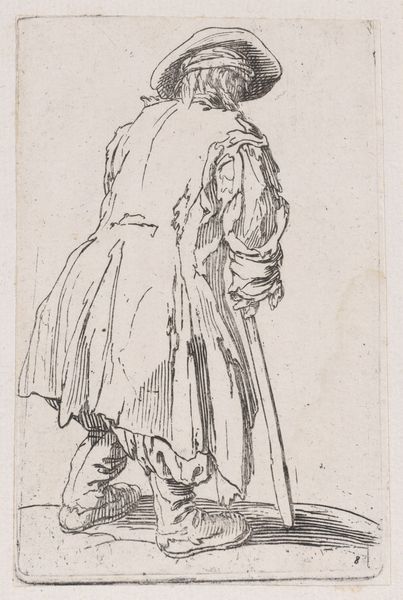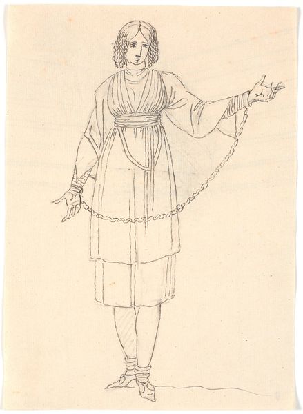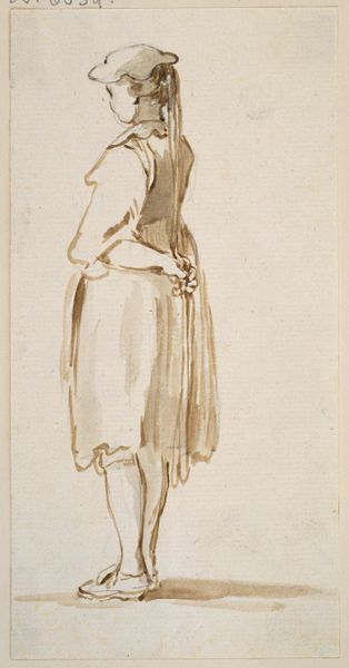 Johan Thomas Lundbye created this drawing of a seated woman with her back turned, sometime in the 1840s. Executed with ink on paper, the artwork has a somewhat diagrammatic quality; a meticulous network of fine lines is used to describe the sitter. The composition focuses predominantly on the intricate details of the woman's dress. Lundbye uses a complex play of light and shadow, achieved through dense, cross-hatched lines, to define the structure of her clothing and the contours of her form. The ruffs and puffed sleeves are rendered with a careful attention to detail. This emphasis reflects a broader artistic interest in structure, with individual components coming together to create a coherent image. The woman's averted gaze invites speculation. Her posture might suggest introspection, yet it could also signify a resistance to conventional portraiture, thus challenging traditional artistic norms. This subversion of expectations encourages a deeper engagement with the artwork, thus prompting us to consider the sitter’s psychological state and the social constructs that shape her representation.