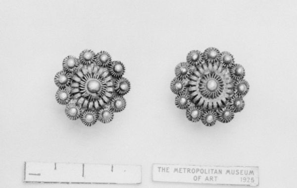 These earrings, by Jacob Ulrich Holfeldt Tostrup, are made of silver. Tostrup, who lived through much of the 19th century, was working in a world where personal adornment carried social and cultural weight. Jewelry was, and still is, deeply connected to identity. These ornate earrings would have been potent symbols of status, tradition, and perhaps even resistance in a changing world. Consider the labor involved in creating such intricate designs. It speaks to a culture that valued both artistry and the display of wealth. More than mere decoration, these earrings evoke questions about what it means to present oneself to the world, and how objects become extensions of our identities. Ultimately, this pair of earrings whispers stories of power, identity, and the intimate ways we adorn ourselves to reflect our place in the world.
