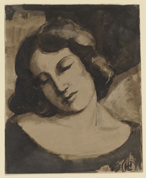 Fujishima Takeji painted this dreamy portrait of a woman, sometime in the late 19th or early 20th century, probably with oil on canvas. You can see the artist’s hand in the soft, blended brushstrokes that create a hazy, atmospheric effect. It's like the whole image is caught between waking and sleeping. The color palette is mostly earth tones, with warm browns and reds dominating the composition. Look at the way the light catches the woman’s face, creating subtle gradations of tone that give her features a delicate, almost ethereal quality. The surface has a kind of hazy texture, which softens the whole image. You can imagine him using soft brushes to blend the tones together, creating a sense of depth and atmosphere. This piece reminds me of the work of Symbolist painters like Odilon Redon, who were interested in exploring the inner world of dreams and imagination, and I think there's a beauty in art that embraces ambiguity.