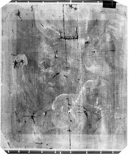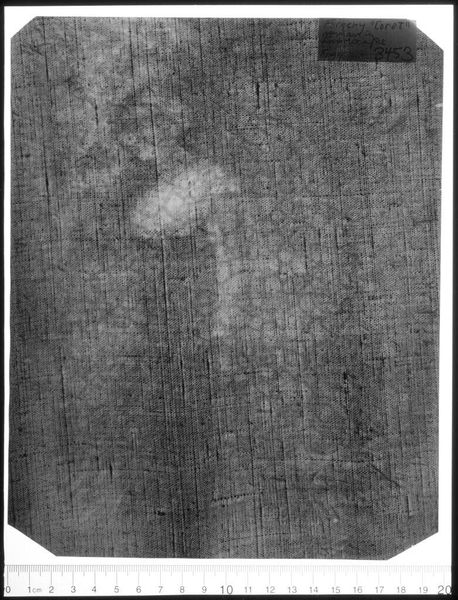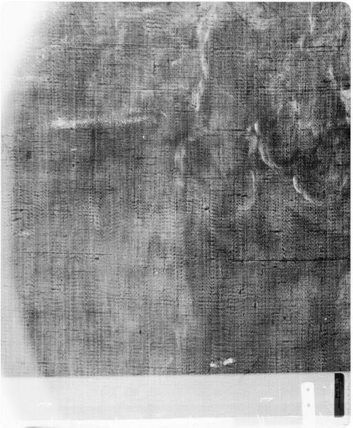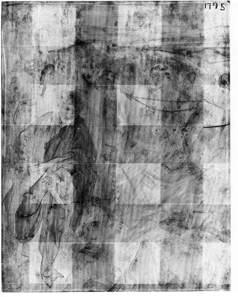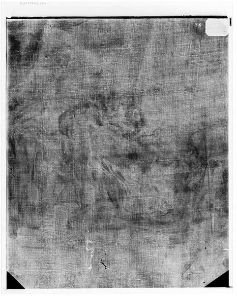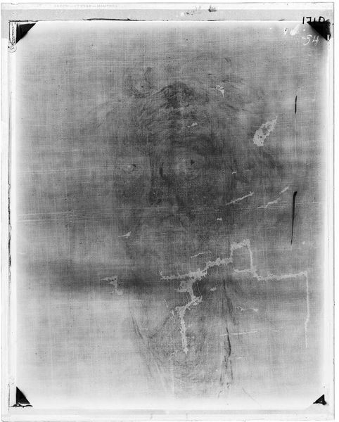 Editor: This is an X-radiograph of "Good Samaritan" from the School of Rembrandt. It's fascinating to see beneath the surface, like a ghostly image of the painting's structure. What hidden stories do you think this radiography can tell us? Curator: This image lays bare the materiality of the painting, revealing not just the artist’s hand but the social and economic structures that enabled its creation. The canvas itself, the pigments used, even the process of its creation—all speak to a specific time and place. What does this reveal about the power dynamics inherent in artistic production and reception during that era? Editor: It's like seeing the skeleton of a masterpiece and thinking about all the unseen labor that went into it. Thanks! Curator: Precisely. This X-ray exposes the layers, reminding us that art is never neutral; it’s embedded in a web of social relations. It makes you wonder about the power structures that dictate what we see and what remains hidden.