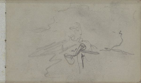 Curator: Just a quick sketch, but even so, it speaks volumes. What do you make of it? Editor: It feels melancholy, somehow. Sparse and haunting. As if figures are fading back into the earth they walk upon. Curator: Here we have Willem Witsen's "Landschap met figuren, mogelijk boeren," a pencil drawing made circa 1884 to 1887. You know, for an Impressionist landscape, it's intriguingly spare in its detail, isn't it? Editor: Absolutely. The lines are almost ghostly, ephemeral. Notice how the composition guides your eye to the figures, yet they lack a clear definition. They seem almost incidental, blurred into their surroundings. Curator: Exactly! Witsen focuses on capturing a fleeting moment, an impression. The solidity of the figures is irrelevant, really. More crucial is the mood evoked, the quiet contemplation, and that light playing on the planes in the field. Editor: Light becomes substance, in a way. He’s reduced form to its most fundamental components, and the empty spaces vibrate with as much importance as the pencil strokes themselves. Semiotically, this approach conveys transience, the dissolving of forms and a meditation on ephemerality. Curator: True! And the lack of clear detail allows viewers to project their own narrative onto the work. Are these laborers resting, or just passing through? There's a beautifully unsettling ambiguity about their purpose. They appear as simple shapes but resonate with the human story behind the landscape. Almost as if they don’t want to be bothered and would rather remain lost in their land. Editor: Indeed, its very vagueness makes the viewer a collaborator in its final meaning. Perhaps that lack of finality reflects how Witsen saw his own artistic trajectory at the time. A pathway with options still under consideration. Curator: Beautifully put! So, it appears that even within this fleeting, incomplete sketch, there are deep insights that can reveal themselves if you allow the art to whisper its mysteries. Editor: Well said. A ghost landscape with tales aplenty still to reveal.