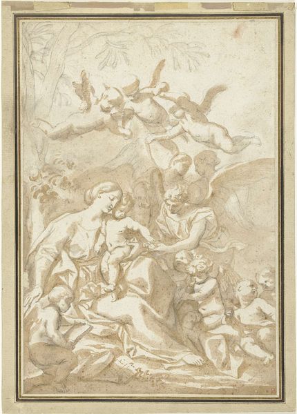 Charles Nicolas Cochin II made this drawing, "Angels Adoring the Holy Trinity," in France, though the date is unknown. The image shows a classical vision of heaven with a multitude of angels surrounding God, Christ, and the Holy Spirit. Cochin was a central figure in the French Royal Academy of Painting and Sculpture during the 18th century, an institution that dictated artistic taste and training. The visual codes here, with idealized bodies and a sense of hierarchical order, reflect the values of the Academy, which served the monarchy and the aristocracy. This image likely circulated as a print, reinforcing religious and social hierarchies. As historians, we can look to archival records of the Academy, religious texts, and popular imagery to better understand the social function of such artworks. They remind us that art is never neutral; it reflects and reinforces the power structures of its time.