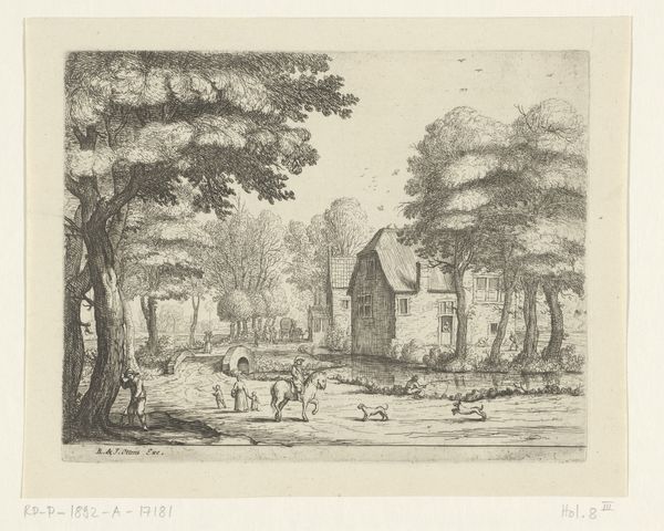 This is Franz Gabet's etching, 'Winter', made in the late 18th or early 19th century. It presents a bustling winter scene, where we see figures skating, socializing, and laboring on a frozen waterway. Gabet was working during a time of significant social upheaval in Europe, from revolution, to industrialization and urbanization. His work gives a fascinating glimpse into everyday life, where class distinctions were deeply embedded in the social fabric. The laborers hauling goods, compared to the gentry in their fine coats, demonstrates the economic disparities of the era. While seemingly a straightforward depiction of winter activities, we can also consider the emotional undercurrents of the scene. The laboring figures remind us of the physical demands placed on the working class, while the skaters suggest leisure and privilege. 'Winter' provides us with a narrative about labor, leisure, and the lived experience of different social classes during this transformative period.