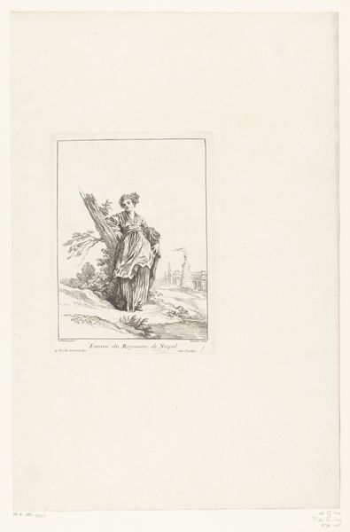 This print, by Jacques Etienne Victor Arago, shows a young woman from Guam on her way to church. It's made with etching, a printmaking technique where lines are incised into a metal plate using acid, allowing for detailed and delicate imagery. The process itself speaks volumes. Etching, unlike direct carving, allows for a more fluid, almost drawing-like approach. Look at the way Arago uses fine lines to depict the woman's clothing and the windy landscape. It’s a technique that lends itself well to capturing fleeting moments and textures, but it is also a process that requires specialized knowledge and tools. Consider the social context: the work was made at a time when European artists were documenting and interpreting cultures from around the world. The print is not just an aesthetic creation, it is a product of a colonial gaze and an exploration of cross-cultural encounters. The artist's choice of such a subtle medium to portray the encounter with another culture also has a lot to say about his sensibility. So, thinking about materials and making helps us understand this image on many different levels.