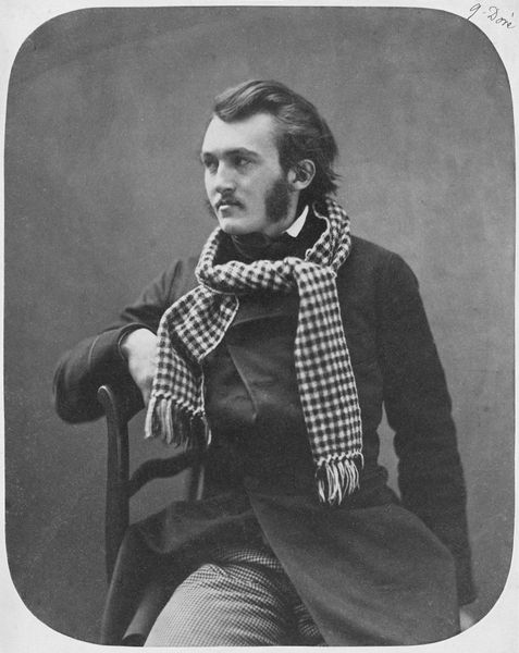 This photograph of Gustave Doré was produced by Nadar, sometime in the mid-19th century, using the wet collodion process. This was a popular technique at the time, requiring the photographer to coat a glass plate with light-sensitive chemicals, expose it in the camera, and then develop it, all before the plate dried. The resulting image, printed on paper, has a soft, almost dreamy quality, which emphasizes Doré’s romantic appearance. The wet collodion process was labor-intensive and required technical expertise. The photographer needed to be both a skilled craftsman and an artist, carefully controlling the materials and processes to achieve the desired aesthetic effect. Considered in relation to Doré’s own artistic practice as an illustrator, this photograph highlights the shifting boundaries between art, craft, and technology in the 19th century, and the rise of photography as a means of both artistic expression and commercial enterprise. It prompts us to consider the social and economic context in which art is produced, and the role of skilled labor in its creation.
