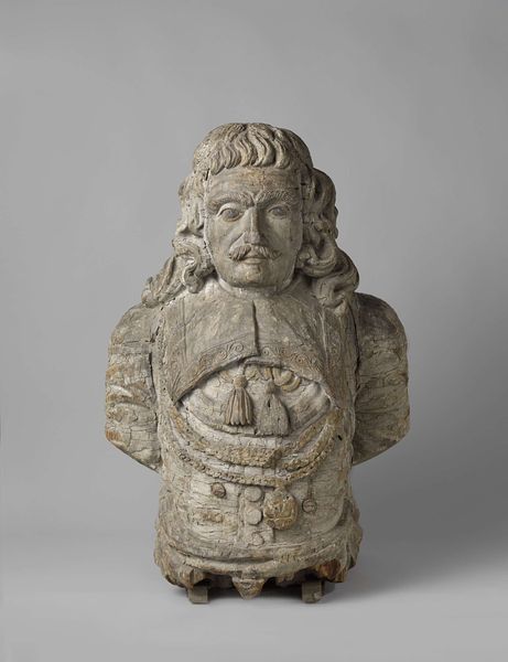 Curator: Let's turn our attention to "Borstbeeld van de triomferende Christus," or "Bust of the Triumphant Christ," a captivating wooden sculpture from the Italian Renaissance, created sometime between 1435 and 1488, attributed to Andrea del Verrocchio. Editor: He has such a profoundly somber affect; for someone labeled "triumphant", that subdued tone in his facial expression really catches my eye. The play of light across his face highlights that beautifully. Curator: Indeed. The choice to depict Christ not in a state of glory but with such visible humanity reflects a broader humanist trend in Renaissance art, placing increased importance on the individual experience, the public image, and an emphasis on the relatable suffering and triumphs of the figure. Editor: And how skillfully it's conveyed. Look at the soft modeling of his beard and hair, framing his face with these almost restless curls; it imbues the figure with movement, an emotional charge, which really comes through despite the sculpture's medium. There's tension between his gaze and the drapery of his robes, too. Curator: The political undercurrents of religious imagery in that period cannot be overlooked either. Verrocchio and his contemporaries were navigating complex relationships with the Church and powerful patrons. This image, while deeply spiritual, also asserts a degree of artistic independence in its representational choices, allowing a more personal interaction with viewers and subtly shaping their beliefs and allegiance. Editor: I'm seeing that independence echoed in the carving of the drapery. The lines, despite their formality, direct my attention. I'm drawn back to the sculpture's gaze and the tension I observed earlier between subject and execution. Curator: The use of wood as a material—not typically associated with grand, imposing works—also speaks volumes about the intended audience and location for this piece. It perhaps was intended for a smaller, more intimate devotional setting where this kind of personal, emotional connection was favored. Editor: Looking at this again now I can see its almost rough unfinished state as well adding to the sense of immediacy and intimacy. So interesting to consider the intention that choice held as it now impacts my sense of the work. Curator: A powerful illustration of art’s dual function—aesthetic beauty alongside subtle persuasive influence—shaping cultural perceptions over time. Editor: Yes, a lasting testament to the profound depth achievable when skill serves social and philosophical engagement.