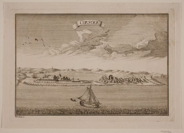Editor: So, this is "Randers," an etching by Alexia von Lode, created between 1767 and 1769. I find it strangely calming, almost like a detailed dream. It is incredibly detailed, packed with elements that give a rich snapshot of the city, with a line-based structure to it, and is located at the SMK in Copenhagen. What strikes you when you look at this piece? Curator: Ah, Alexia! A master of the minuscule. To me, it's like peering into a snow globe, only instead of festive glitter, we have the quiet industry of 18th-century Randers. But notice the light! Even in an etching, von Lode manages to capture that cool, northern light, bouncing off the water and the clouds. It almost feels like you can smell the sea air. Ever feel that way about art? Editor: I get that. It really transports you. The windmill and figures feel so... grounded, juxtaposed against the openness of the sky. Curator: Exactly! And those tiny figures? They're not just there for decoration. They're vital – breathing life into the scene, a silent chorus singing the praises of everyday existence. I can almost imagine them laughing, can you? Von Lode captured not just the place, but the pulse of it, you know? Editor: Definitely, it’s almost frozen in time, but bustling with potential energy. Did many female artists create landscapes back then? Curator: Not as many as we’d like, sadly! Women often had restricted access to training and patronage, so finding a woman creating landscapes, especially with such skill and detail, is refreshing. It reminds us that art history is a constant rediscovery, that our perceptions are constantly shaped by who gets a voice. Editor: That makes me appreciate it even more. Thanks for pointing that out. I will certainly view it with renewed eyes. Curator: Absolutely. It’s a whisper from the past, inviting us to imagine the stories held within those etched lines. Beautiful, isn't it?