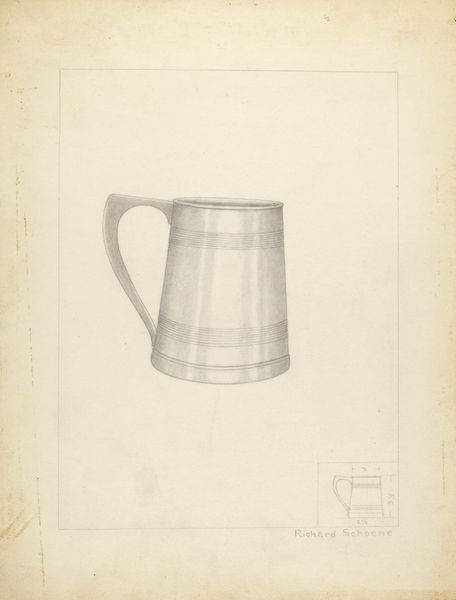 Vincent Carano's 'Silver Mug' is a drawing, and what strikes me is the way it's caught somewhere between observation and invention. It's like Carano is thinking through the mug, not just depicting it. The color palette is, well, silver, with delicate graphite lines describing the form. There's an under-drawing of a smaller version too, complete with precise measurements, which gives this piece a technical feel, but in a strange way. I mean, this isn't just cold rendering; it's got a warmth in its attention to the material. Look at how the light seems to sit on the surface. And the way those horizontal lines ripple and curve… It reminds me a little of Giorgio Morandi, but maybe with a bit of Roy Lichtenstein's comic book feel, even though this is much earlier. It's a quiet piece, full of possibility and reminds us that art is an ongoing conversation.