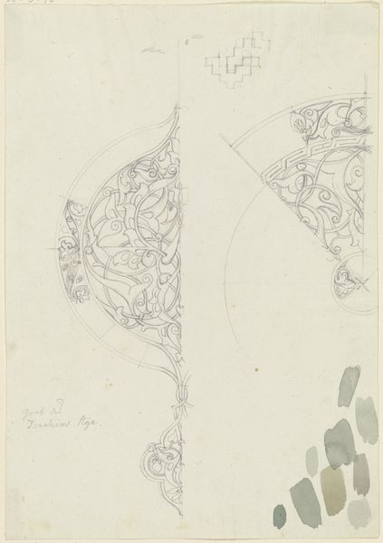 Here we have an anonymous design for a ceiling, a delicate dance of ink on paper. It offers a glimpse into a world of ornamentation, an echo of the values of its time. The drawing invites us to consider the social function of decoration. In an era where wealth and status were proclaimed through elaborate displays, interior design played a critical role in shaping social identities. The design probably intended for the home of a wealthy merchant, is covered with decorations to display the taste and wealth of the owner. Consider how the empty oval might have been designed to frame a portrait. These portraits were often of men, reinforcing the patriarchal social norms. The visual language of the design suggests a world where every surface was an opportunity to perform identity.