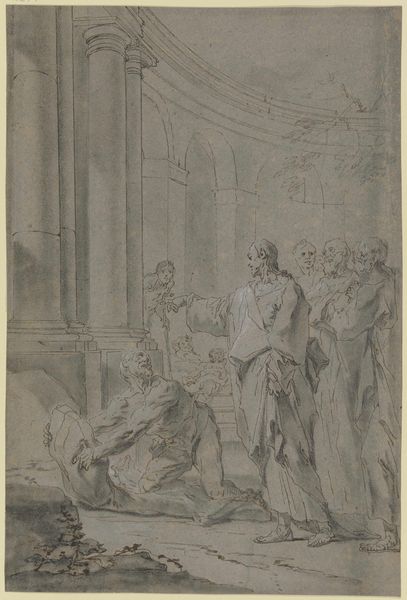 Gottlieb Welté created this artwork titled "Soldaten und Marketenderinnen in einem Gewölbe mit Fässern und Kisten" using watercolor and pen in the 18th century. The picture plane is divided into three distinct horizontal sections; figures to the left, barrels and figures to the right, with the architecture looming above. Welté’s composition orchestrates a delicate balance between the rough, cavernous architecture and the bustling energy of the figures. Note how the light catches the edges of barrels and figures, creating pockets of visual interest. Welté uses the stark geometry of the barrel to counterbalance the architecture. This interplay of light and shadow, combined with the geometry of the barrels and the architecture, destabilizes our sense of space, turning a simple genre scene into a sophisticated visual exercise.