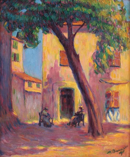 Curator: This is Dodge Macknight’s watercolor, "Street with Pines, Fontvieille." There's no specific date associated with the work. Editor: It’s so evocative. The pale washes create a dreamlike, almost nostalgic atmosphere. What medium did Macknight employ here? Curator: Macknight clearly revels in the properties of watercolor. The way the pigments pool and bleed creates a sense of light and heat, evoking the South of France. It makes me consider the legacies of colonialism and its impact on artistic representation. Editor: Yes, and the visible brushwork and the texture of the paper itself are so critical. I find myself considering the relative ease of production afforded by watercolors, compared to the intensive labor involved in an oil painting. Curator: Absolutely, it's fascinating to consider how place informs artistic practice, and how art, in turn, shapes our understanding of place, its people, and its socio-political history. Editor: Thinking about it from the perspective of the labor involved in creating images, I find it remarkable how much information Macknight conveys with such simple means. Curator: It leaves you with a lot to consider, doesn’t it? Editor: It certainly does. A simple image speaking volumes.