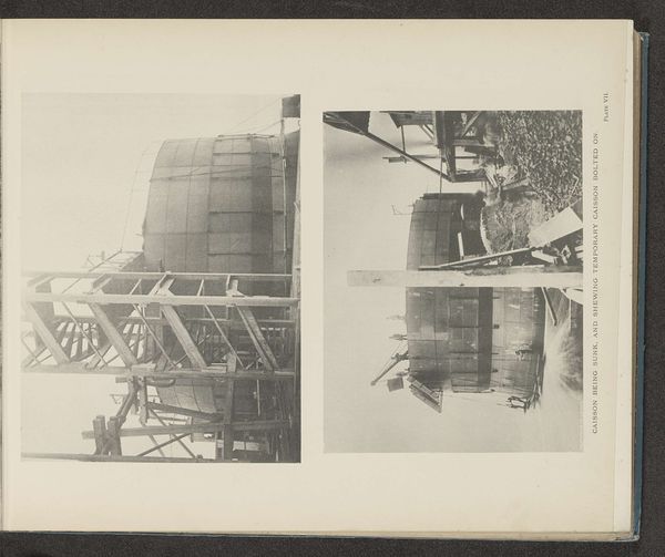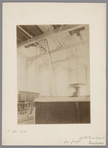 This is a photograph of a machine in a building, by J.W. Meyster. The image uses grayscale to capture the play of light and shadow on this industrial subject. The photo itself has a kind of grainy texture, especially visible in the walls behind the machine. See how the light catches the corrugated iron, creating these rhythmic vertical lines that contrast with the solid, cylindrical forms of the machine. I think what's interesting here is the focus on the process of industry itself. The artist invites us to consider the texture and material of these manufactured objects, rather than the smooth, finished products. It reminds me a bit of the work of Bernd and Hilla Becher, who also documented industrial structures with such loving attention. There's a sense of ambiguity too, it can be seen as both documentation and art. It's like Meyster is saying that industry is an ongoing conversation, where machines and workers shape each other.