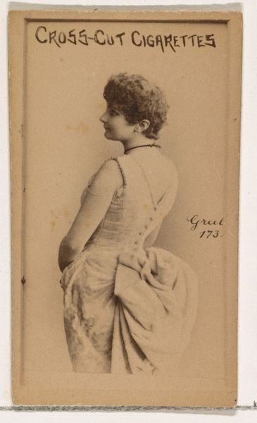 This card featuring Miss Sadie Martinot was produced by W. Duke, Sons & Co. to promote Cross Cut Cigarettes. These cards were a cultural phenomenon, reflecting the commodification of celebrity and the burgeoning advertising industry. Miss Martinot, a popular actress, sits perched on a box of cigarettes, embodying an idealized version of femininity. The composition, with its classical draping, attempts to elevate both the actress and the product into the realm of high art, aiming to create an aspirational lifestyle for consumers. However, the image is also telling of the gendered nature of advertising, where women’s images are used to sell products, reinforcing traditional roles and expectations. As you consider this card, think about the messages it conveys about beauty, success, and the role of women. How does it reflect the values and desires of its time, and what does it tell us about our own?
