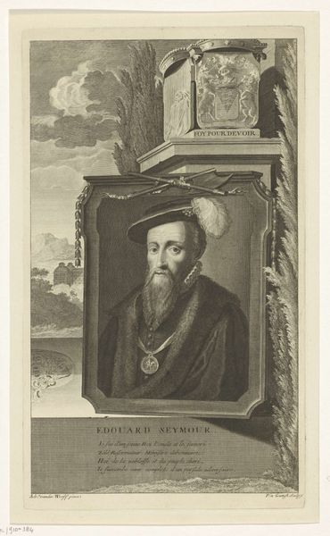 This is a portrait of Anne de Montmorency made by Jacques Reyne Isidore Acarie-Baron. Encircling him, we observe figures carrying celestial globes and masks emerging from the elaborate frame. Such figures, often seen in classical and Renaissance art, evoke the weight of knowledge and the burden of earthly existence. Consider Atlas, forever condemned to hold up the heavens. This theme echoes through art history. We see it re-emerge in Mannerist sculptures and even in the architectural details of grand European buildings, where figures appear to support the very structure. These motifs have shifted in tone over time, from expressions of power and divinity to more subtle reflections on the human condition and its struggles. There's a subconscious resonance in these enduring images, a reminder of our collective past and a primal understanding of the forces that shape our lives. The artist taps into our collective memory, engaging us on a deep, almost visceral level. The cyclical return of such iconography is a powerful testament to its timeless appeal. It continues to transform, yet always remains anchored to its origins.