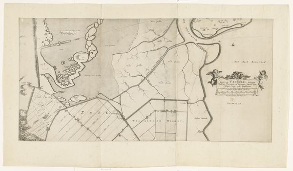 Editor: This is "Kaart van Kennemerland en West-Friesland (negende deel)" created in 1680 by Coenraet Decker. It’s a drawing, an etching, a print, rendered in ink on paper, currently at the Rijksmuseum. It's really interesting how geometric it is! How do you see this piece? Curator: This map, more than just a representation of land, speaks volumes about the Dutch Golden Age's ambition to control and organize their environment, using etching and ink. It presents not just a landscape, but a deliberate ordering of space that served both practical and ideological functions. Consider how materials played a key role: the paper's quality affects the map's longevity and dissemination, influencing who has access to this 'knowledge'. Editor: So, the material choice impacts its reach? Curator: Precisely. And etching, unlike painting, enables the easy reproduction of images. The printing enabled a standardized and widely distributable vision of Dutch land, reinforcing the power and vision of its elites. Look closely at how geometric shapes denote land divisions – those aren’t just fields; they signify ownership and cultivation as key resources in society. How are they produced? Who owns them? Who has access to them? Editor: It's amazing how much this tells about the labor behind shaping the Dutch landscape. Curator: Exactly! This map isn't just about geography. It tells about the labor and materials needed to achieve such organized agricultural design. Reflect on that level of production in a global and capitalistic context: what are some resources and economic impacts involved? Editor: I see that this piece displays organization in society, along with who had access and how the Dutch utilized production, down to their material choice. Curator: Yes, and understanding the map's materiality—the paper, ink, and etching process—allows us to see the role this image had within its society. A deep material examination, in this case, broadens into considering global capitalism, colonial ambition and historical context.