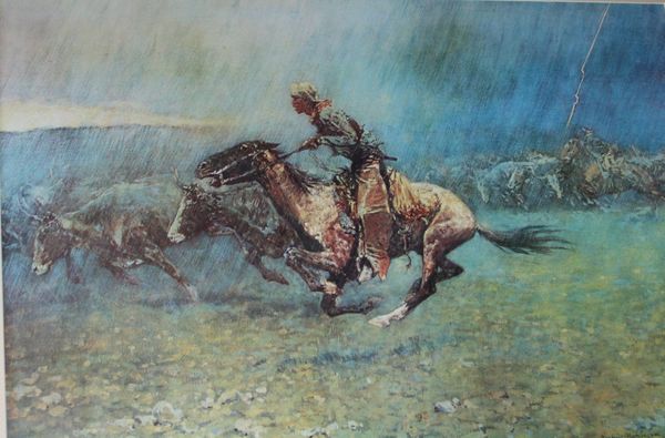 Richard Prince made this photograph called ‘Cowboy,’ and its dreaminess comes from the way the image sort of dissolves into a field of blue. It's like he's painting with light, pulling us into a space that feels both real and totally imagined. Look closely, and you see how the texture is almost like a memory fading at the edges, a soft blur that keeps you from pinning it down. The blues that make up the sky create a real mood of nostalgia, but also something kind of melancholy. I keep thinking about how the details kind of melt away the longer you look. It reminds me of some of Gerhard Richter’s blurred paintings, the way they mess with perception, making you question what you're seeing. Like, is it a snapshot, or a feeling? Art's not about answers, it's about the questions you ask along the way.