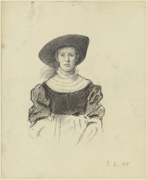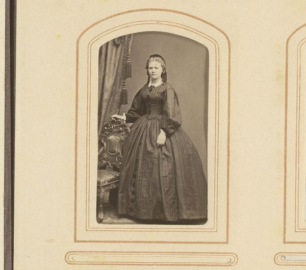This is Johan Marinus Schalekamp’s photographic reproduction of Frans Hals’ painting of Feyntje van Steenkiste, made sometime in the late 19th century. Looking at this image, I am struck by the ways that light and shadow are used to create form and depth. There's a real sense of texture in the way the fabric drapes and folds, and the way the light catches on the ruff around her neck. Thinking about this photograph as a copy, I wonder how Schalekamp was thinking about the translation of paint to light? The subtle gradations of tone, from the soft, almost luminous highlights to the deep, velvety shadows, are really interesting. Especially when you consider this as a picture *of* a picture, there is something so compelling about how surface and form are handled. It reminds me of the work of someone like Sherrie Levine, who re-photographed famous images to ask questions about originality and authorship. This photograph, like Levine’s photographs, seems to say that art is always in conversation with itself, always building on what came before.
