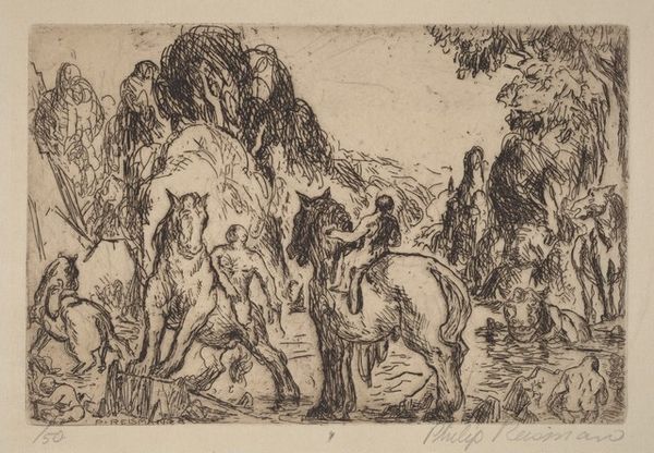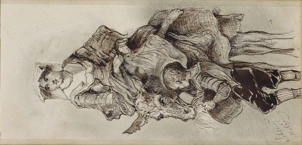 Editor: This is Lovis Corinth's "from Saul and David," housed at Harvard Art Museums. It's a chaotic charcoal drawing on paper, and I find it quite unsettling. What do you see in this piece? Curator: I see the weight of history, quite literally. Corinth, working amidst immense social and political upheaval in Germany, often grappled with biblical themes to explore power, conflict, and the human condition. Consider how this drawing, likely a study, engages with the long tradition of representing Saul and David, and asks us to question the narratives we inherit. Does this challenge your initial reaction? Editor: It does. I was focusing on the artistic style, but the historical context adds a whole other layer of meaning. I now see the chaos reflecting the societal turmoil. Curator: Precisely! And that tension is exactly what makes art so compelling, isn't it? Editor: It really is. Thanks for pointing that out!
