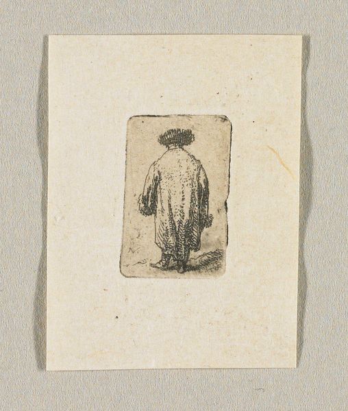 Curator: Here we have Ernest Meissonier's "Lopende jongen naar links, een fles in de rechterarm, een brood (?) onder de linker," which translates to "Boy walking to the left, a bottle in his right arm, a bread (?) under the left", made sometime between 1825 and 1891. The piece is executed in graphite. What's your first take? Editor: Sparse. The composition feels really minimal, almost ghostly. The figure emerges from a nebulous background—very understated but strangely captivating in its simplicity. Curator: I agree, the spare rendering and the indeterminacy of his possessions allow for an exploration of labour, and perhaps more broadly the daily realities of the working class, in nineteenth-century France. I’m immediately drawn to consider the social stratification of that time. What did it mean for a boy to carry such burdens, both literally and metaphorically? Editor: Well, focusing on the visual, look at how Meissonier uses subtle shading to suggest movement. The slight lean of his body, the soft blurring around his legs… it’s all about conveying the fleeting moment, not some grand narrative. There is a real attention to form, line, the modulation of light, and texture which are intrinsic to the reading of this piece. Curator: Absolutely, and if we extend the discussion of movement to the sphere of identity, this prompts me to reflect on questions such as “Where is he going?" and "What social strata does he belong to?” Given the potential scarcity suggested by the load he bears, how do we understand his socio-economic circumstances, and how does his situation influence the reading of the piece within broader conversations surrounding inequity? Editor: I suppose if we stick to Meissonier’s technique, it’s evident he’s deliberately avoiding detail to leave the boy slightly anonymous. Maybe it encourages a universal reading—the timelessness of youthful labor and endeavour. Curator: I can appreciate the openness you find there, and the space for personal introspection, though for me it highlights the systematic and often brutal reality faced by marginalized communities in 19th century Europe, who remained consistently disenfranchised, with very little means of bettering their lot. Editor: Fascinating how our readings can diverge so radically! For me, it's the artist’s handling of line and light. But I recognise that to other viewers, that is clearly just one element in an interpretation. Curator: And for me, the intrinsic visual language has to lead somewhere, so why not use it to shine a little light into the lives of these historical individuals.