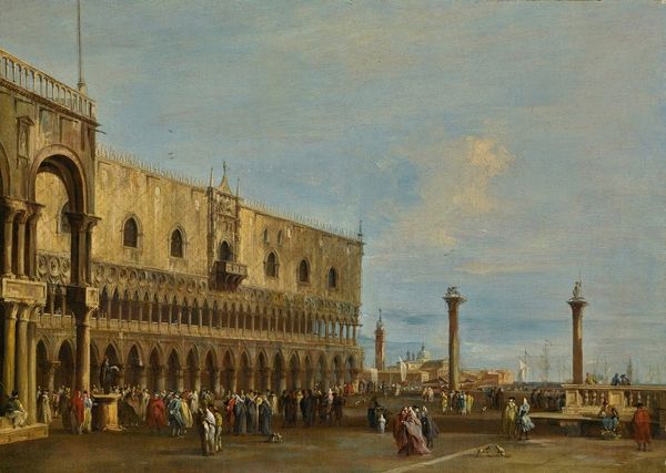 Francesco Guardi painted this scene of a hot air balloon rising sometime in the late 18th century, using oil on canvas. The balloon, a symbol of aspiration and the overcoming of earthly bounds, is the focal point, harking back to Icarus. The crowd's gaze, collectively drawn upwards, mirrors humanity's timeless fascination with flight and transcendence. Consider this motif alongside Renaissance depictions of the Ascension of Christ; both capture the moment of rising to the heavens, a blend of science and almost religious awe. Note how the balloon, in its spherical form, echoes the halos of saints. As we trace the cultural lineage of flight, we observe how it resurfaces, transformed by technology yet consistent in its emotional appeal. This balloon, a vessel carrying hopes and dreams, engages our collective memory, reminding us of the profound human yearning to rise above our earthly constraints.