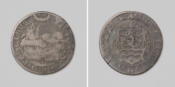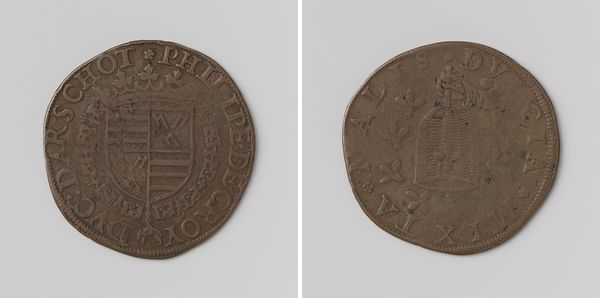 This is a silver medal of Philip IV, King of Spain, commissioned by the Council of Finance and struck in 1646. The eye is immediately drawn to the circular structure of the medal, which creates a sense of enclosure, focusing our attention on the intricate details within. The composition is divided into two distinct sides. On one side, we see a crowned coat of arms, symbolizing power and authority. The other side features a complex heraldic design with an eagle, surrounded by floral motifs, evoking a sense of natural abundance, perhaps suggesting a claim of prosperity under Philip IV's rule. The inscriptions in Latin form a complete circle around both sides, binding the imagery and text into a unified symbolic statement. The medal's design can be interpreted as a form of propaganda, using symbolic language to promote the king’s image and the council’s authority. This object, therefore, functions as a carefully constructed artifact, intended to convey specific messages about power, legitimacy, and prosperity.