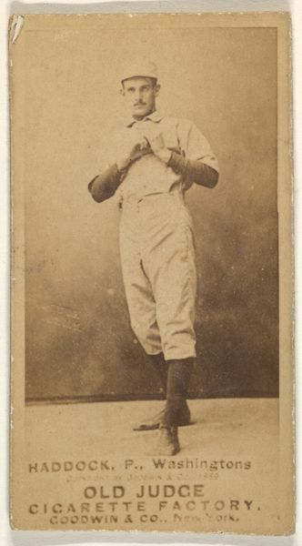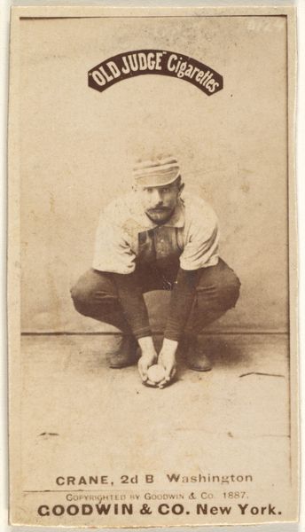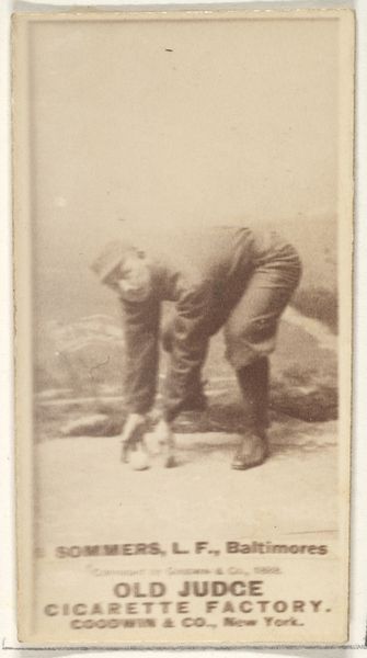 This baseball card of Tommy McCarthy, the St. Louis Browns center fielder, was distributed by Goodwin & Company as part of the Old Judge Cigarettes series. The image shows McCarthy lying prone, hand outstretched, almost as if he were a classical figure in repose. Consider the striking pose; it's not one of action or readiness, but of stillness, almost vulnerability. The extended hand, near touching the ground, is not unlike the hand of Adam in Michelangelo’s Creation of Adam, reaching out, not to God but towards the earth. This connection to the soil is primal; it's a grounding gesture that echoes across millennia. It's a curious tableau, linking the burgeoning American sport with the wellspring of human artistic endeavor. The game, the player, and the very ground he plays on become part of a timeless, ongoing narrative.