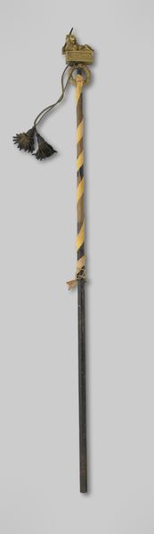 Curator: It’s remarkably understated, isn’t it? A simple curve. It almost has the character of an antique fishing rod or something similar, doesn't it? Editor: Well, let’s unpack that simplicity. What we have here is what’s described as the bottom piece of a parasol or umbrella made of wood with a bone knob, dating roughly between 1920 and 1940. It resides here at the Rijksmuseum. The linearity is its most striking aspect, especially given its association with protection and perhaps even class status during that period. Curator: That bone knob especially intrigues me, a sign of gentle luxury! Do we know about the object’s owners, or how such a quotidian item came to be considered museum-worthy? Editor: That is where things get interesting! There are limited records for this object’s early ownership or usage, sadly, which also makes it fascinating. We do have records that suggest that by examining trends in parasol and umbrella designs through a sociological lens we can perhaps unlock insight into evolving social codes and the changing roles and status of women during that time. Curator: Ah, precisely! So this slender object whispers narratives of social history, hinting at changing gender roles and accessibility. We can see here a direct lineage to power through class display, by what materials are used and the aesthetic values that these choices promote. Editor: Absolutely, consider too how weather and climate shape society, where things like parasols and umbrellas literally shade societal structure from meteorological patterns, thus allowing different freedoms to the owner than one might think about. The way we understand its functionality is really interesting in how that understanding is framed, historically! Curator: It's curious how such a simple object reflects complex social forces. Perhaps we read more into it with distance? I still think it makes a marvelous fishing rod! Editor: Well, with objects like this there is the potential to create further public dialogue in understanding this, it is more an invitation to examine assumptions about historical relevance than simply viewing what we see.