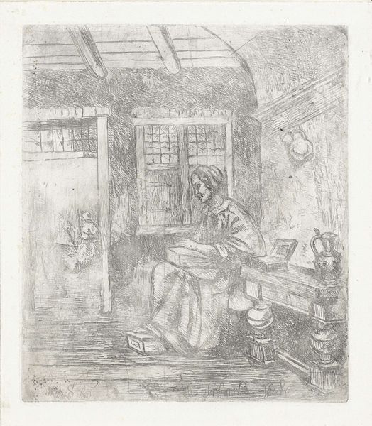 A. Schaub's etching, "Kantwerkster," captures a woman engaged in the delicate art of lacemaking. Notice the head covering, a symbol of modesty and domesticity, echoing through centuries of art history, from early Renaissance Madonnas to Vermeer's "Lacemaker". Here, this simple garment speaks volumes. It is a signifier of her role, a visual echo of countless women depicted in similar poses. This iconography goes beyond mere representation; it evokes a shared cultural memory of women's work and quiet perseverance. Reflect on how this image resonates with ancient depictions of female figures, each bearing a weight of tradition and societal expectation. The emotional power lies in this visual continuum, connecting us to the countless women who have performed similar tasks throughout history. The image becomes a conduit, drawing us into a deeper, subconscious understanding of the human condition.