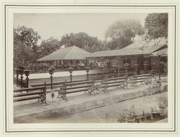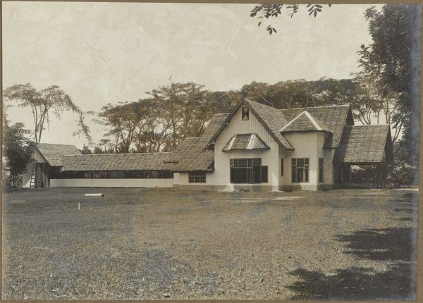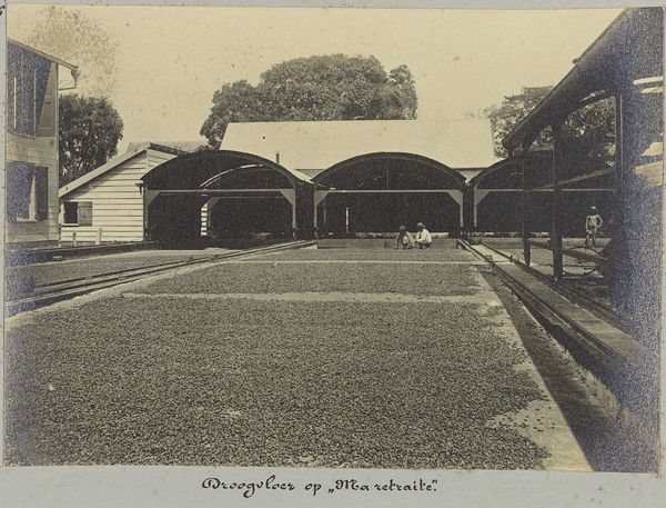 Editor: Here we have Hendrik Doijer's "Droogvloer op "Ma retraite"," created sometime between 1903 and 1910, using a cyanotype print. It's overwhelmingly blue and depicts a large area covered with what seems to be some kind of agricultural product. There are a couple of people visible in the distance... what do you make of this? Curator: Well, considering Doijer's background and the era, this cyanotype presents us with a fascinating glimpse into the socio-economic structures of colonial agricultural production. Notice the vast scale of the drying floor, and then the very limited view of any actual individuals performing labour in that space. Editor: Right. It feels like the focus is on the industrial landscape rather than the people working there. Curator: Precisely. The “Ma retraite” of the title hints at something, doesn’t it? This wasn't about idyllic farm life, but industry... Likely, this depicts part of a plantation, probably in the Dutch East Indies, where Doijer worked. The cyanotype process, cheap and easily reproducible, becomes itself an interesting document – how would this image have circulated? Editor: So it's not just a picture; it's a record of colonial labour practices, almost presented as a spectacle of efficient production. Do you think the blueness of the cyanotype process adds something to that narrative? Curator: Absolutely. It aestheticizes, even sterilizes, the scene, perhaps obscuring the harsh realities of plantation life. Consider who this image was *for*. Was it an internal report? Meant to impress investors? To be sold as tourist souvenirs? Those options alone give us a wealth of historical contexts to pursue. Editor: That makes so much sense. I initially saw only a beautiful, blue landscape, but now I see it represents a much larger political picture. Curator: Indeed. Looking at the image, and its probable colonial origins, helps us examine how visual media shaped and reinforced particular social and power dynamics.
