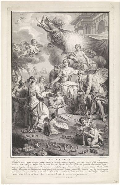 Editor: So this is "Transfiguration of Christ on the Mount Tabor", an engraving by Abraham de Blois from around 1679 to 1728. It's quite detailed. The figures below almost recoil, contrasting with the serene scene above. How should we understand a work like this, with its historical and religious subject matter? Curator: A key question with religious art like this is always: who was the intended audience, and what messages were they supposed to take away? Prints like these often served a didactic function, circulating religious stories and morals to a wider public than, say, large-scale oil paintings in churches. Editor: So it’s a way to distribute religious messages in a way that's more portable and affordable? Curator: Precisely. Think about how the baroque style contributes to the overall effect. The dramatic gestures, the strong contrast between light and shadow, all work to create an emotionally engaging experience for the viewer. These choices served the purpose of religious persuasion within the social context of the time. Consider also the role of the Rijksmuseum itself as a public institution – what does it mean to house and display this work today? Editor: That’s a good point. Is it seen as a historical artifact or an object of faith, or both? Curator: Exactly. Museums are not neutral spaces, they shape how we understand and value art. The placement of this print within the museum setting impacts its meaning, shifting its function from religious instruction to historical representation, to something admired aesthetically. Editor: That definitely changes the way I see it, now that I understand its cultural trajectory and what role the museum plays in defining the piece. Thanks! Curator: And it’s a great example of how the same image can mean very different things depending on who’s looking at it and where they're seeing it!