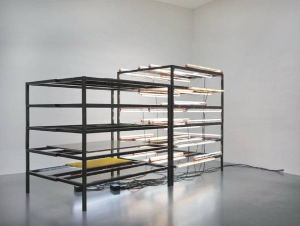 Editor: We are looking at "static balance" by Carsten Nicolai, from 2007. It seems to be an installation made specifically for this space, featuring geometric forms and reflective surfaces. I find it a bit cold, almost clinical. What strikes you about this piece? Curator: The clinical feel, I think, speaks to a larger narrative within Minimalism. Often we see the striving for pure form, for a kind of detached objectivity, as politically neutral. But is it, really? This installation, for me, prompts questions about how power and control manifest through the construction and manipulation of space itself. How does Nicolai’s strategic use of reflections alter our perception and interaction with the environment? Editor: That's a cool reading. I hadn't thought about it like that. It just seemed like a play with perception. Are you saying the clean lines and geometry have some sort of deeper social connection? Curator: Precisely. Think about the spaces where we encounter similar geometric forms – corporate headquarters, government buildings, even prisons. There's a system of order and control embedded within those architectural choices. By using a similar aesthetic in an art context, Nicolai subtly invites us to question the ideologies that those forms represent. It encourages us to think critically about how our movements are governed, our gazes directed, within seemingly neutral environments. The reflections especially... where does the artwork end and we begin? Who does that serve? Editor: That’s really thought-provoking. It changes my whole perspective. So, it’s less about just *seeing*, and more about *questioning* what we are seeing. Curator: Exactly! It invites us to critically examine the relationships between space, power, and the individual. Hopefully, that deeper analysis expands our perception of the art world beyond what is only shown in the physical forms. Editor: Wow, that adds a whole new layer of understanding. I'll definitely look at minimalist works differently from now on.