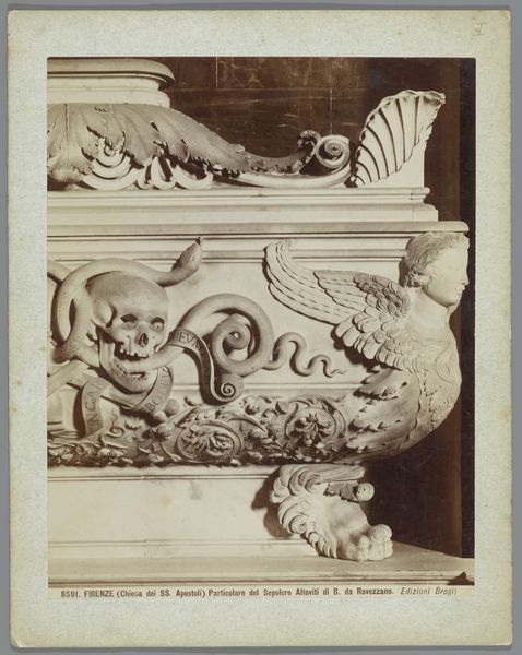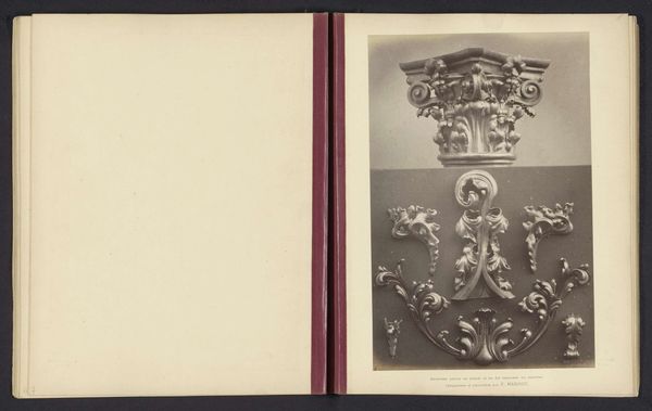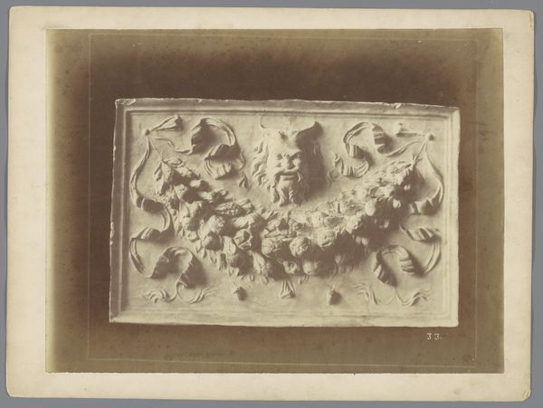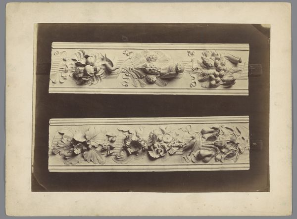 Editor: Here we have a photograph titled 'Compositie van gipsen ornamenten uit het atelier van J. Delbove, Brussel, België' by Charles De Trez, dating from around 1860 to 1882. It’s a photo of various plaster reliefs. There is an element of decay, as this is an old photograph, but also a sense of a taxonomy or arrangement... How do you interpret this collection of objects and its presentation? Curator: This image offers a glimpse into the late 19th-century world of architectural ornamentation, doesn't it? But I am interested in the framing device here, and how it functions in light of present issues. De Trez presents these plaster casts –likely models for building facades or interior decorations – as commodities. Now, consider the social implications: who was commissioning these ornate designs? What power structures were being reinforced by adorning buildings with classical motifs? Editor: That’s a great question. It makes me think about the relationship between art, power, and the built environment. So, the photo documents more than just decorative elements. It alludes to social structures as well. Curator: Precisely. The arrangement—the way these objects are displayed and numbered—speaks to an industry catering to a specific class. We have to question the cultural values embedded in these choices. What narratives are amplified, and whose stories are silenced when we elevate a certain aesthetic in the built environment? Editor: I never thought about it that way, but now I see that even seemingly harmless ornamentation can reflect broader societal power dynamics. The plaster casts are more than decorative; they embody privilege. Curator: Exactly. By analyzing such images through a critical lens, we start to challenge the accepted norms of art history, don't you think? What do you make of that? Editor: I now see art history as inseparable from socio-political concerns. This photograph then becomes more than an aesthetic piece – it's a historical document ripe for interrogation and social dialogue.