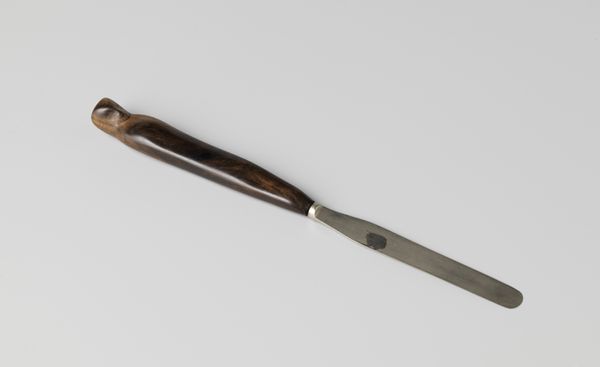 Editor: This is an earthenware pipe made by Goedewaagen Gouda, dating from around the 19th century. There's a delicacy in the details, and I'm intrigued by what this simple object might tell us about the culture that produced it. How would you interpret its significance? Curator: As a historian, I see this pipe not just as an object, but as a vessel carrying a rich social and cultural history. In the 19th century, tobacco use was deeply ingrained in many societies, wasn't it? And the act of smoking, especially through ornate pipes, was often imbued with ritual and social meaning. How do you think the pipe’s design reflected the societal status or aspirations of its owner? Editor: Perhaps it reflects a comfortable middle class? It’s decorative, with the Goedewaagen mark visible, so it signifies some investment in quality. However, earthenware is relatively common, not like porcelain, for example. Curator: Exactly. The material and maker's mark also give us clues about production and consumption patterns of the time. Goedewaagen was clearly marketing to a certain segment. The act of smoking became closely intertwined with the burgeoning industrial culture, didn’t it? We begin to observe the way manufacturers advertise pleasure or habit with increasing brand awareness. How do you feel knowing this everyday object carried so much complexity? Editor: It makes me see ordinary objects in museums with fresh eyes! Now I'm wondering how consumer culture shaped art back then. Curator: Precisely! And that understanding is key to unlocking layers of meaning within the art. It changes how you understand power structures too, doesn't it?
