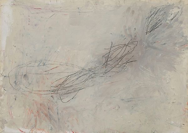 John Cage made "New River Watercolor, Series I, No. 3" using watercolors. Look at how the marks just bloom and bleed into the paper, each a result of Cage’s delicate but intentional hand movements. It’s art as a dance, a performance captured in pigment. The paper itself, with its soft, handmade quality, seems to participate in the creation. There's a tension between the watery washes and the stark, almost architectural blocks of color. Notice the loop on the right, how the orange fades in and out, revealing the layers beneath, like memories surfacing. You can almost feel the pressure of the brush, the speed of the gesture. Cage was deeply inspired by Zen Buddhism, and you can see this influence in the way he embraces chance and spontaneity. It reminds me of the work of Cy Twombly, who also used gesture and mark-making to create open-ended, poetic compositions. Cage's work invites us to slow down, to notice the subtle shifts and changes that occur in the act of creation. It's less about what it is and more about how it becomes.